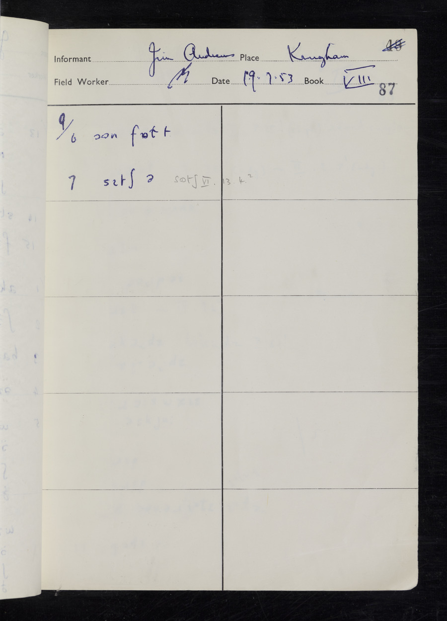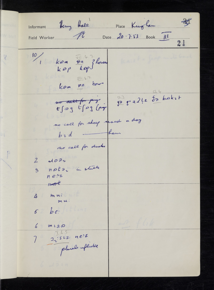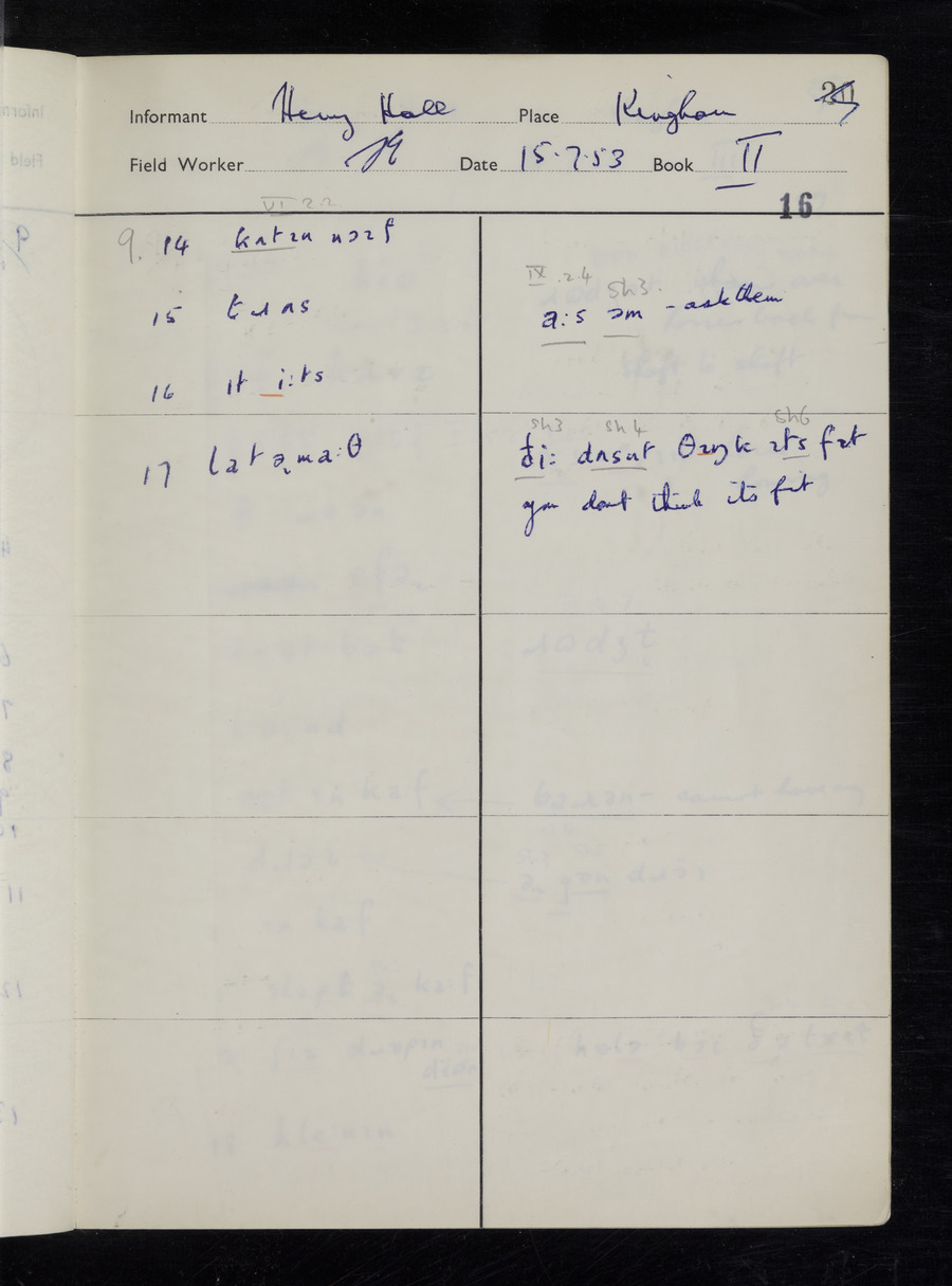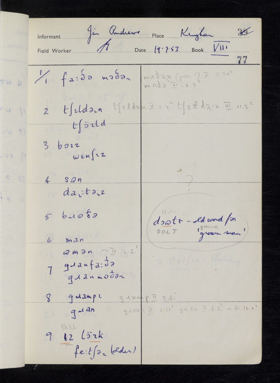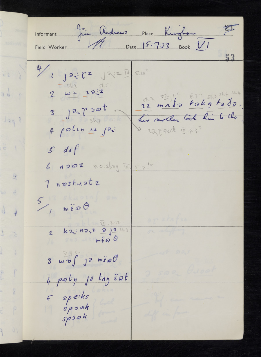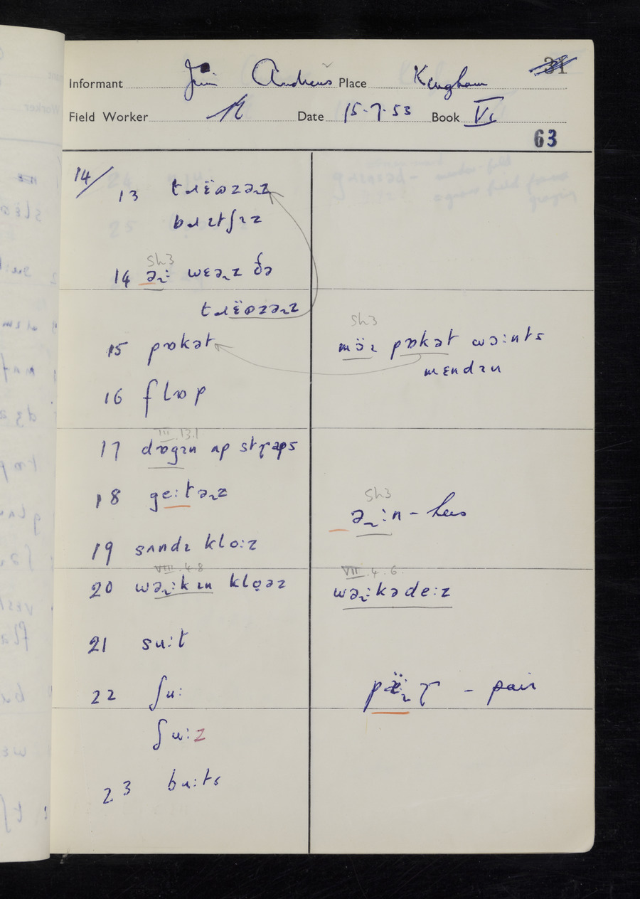 Interviews have been carried out by fieldworker Stanley Ellis. There are three informants for this response book - Henry Hall, Jim Andrews and Jack Marshall. Their responses can be found in the following books: Henry Hall - I, II, III Jim Andrews - IV, V, VI, VII, VIII Jack Marshall - IX