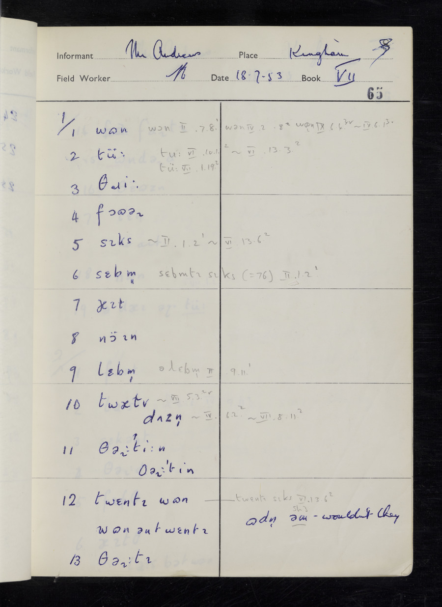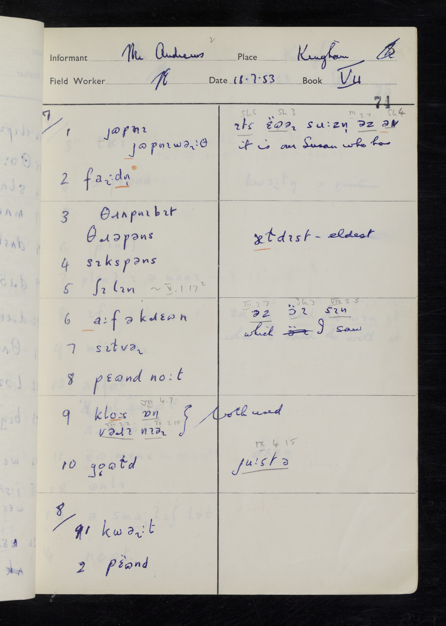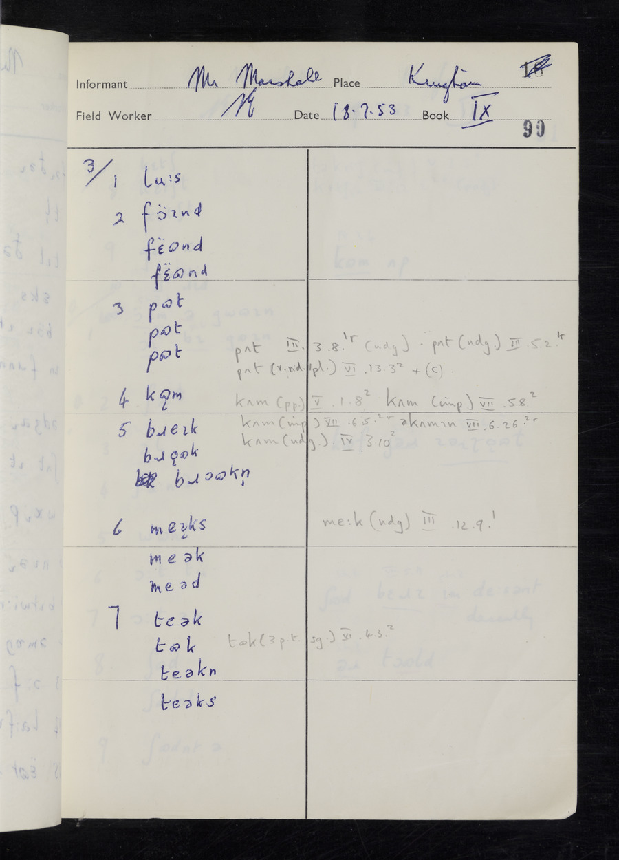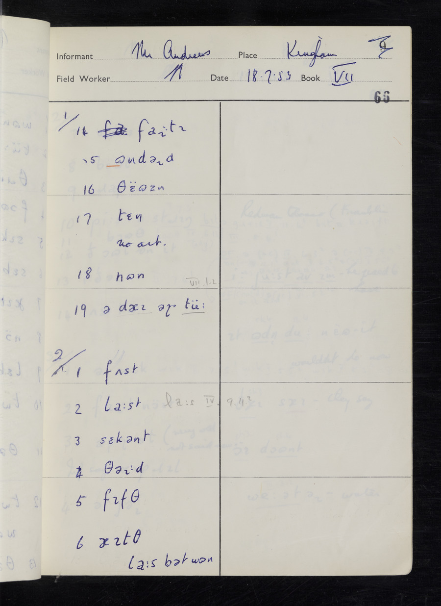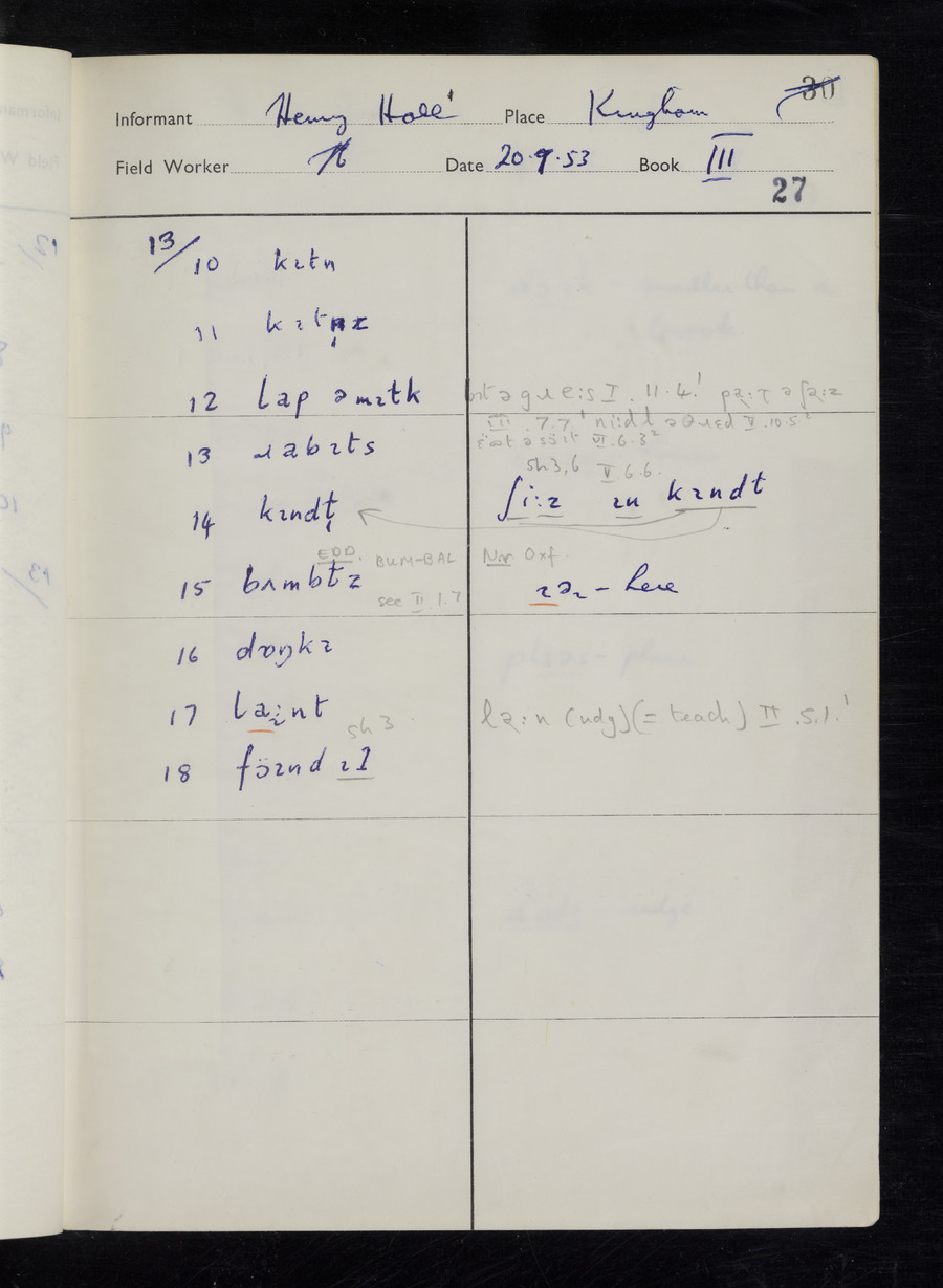 Interviews have been carried out by fieldworker Stanley Ellis. There are three informants for this response book - Henry Hall, Jim Andrews and Jack Marshall. Their responses can be found in the following books: Henry Hall - I, II, III Jim Andrews - IV, V, VI, VII, VIII Jack Marshall - IX