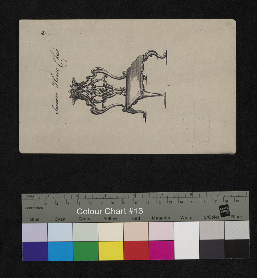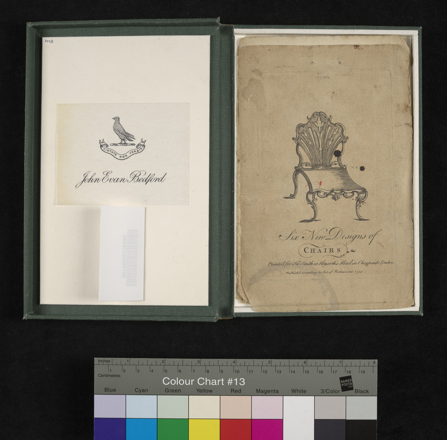 The Bedford Collection copy A083 has five loose plates, unnumbered and untitled, including title page. The sixth loose plate is titled plate number 69, a summer house chair, and is from Robert Sayer's, The chair-maker's guide (1766): incomplete copy of Bedford Collection A065. It is the missing design from the first edition. Sayer used the original plates engraved for John Smith and added numbers 69-75 and the title, summer house chair. See Christopher Gilbert, FHS Journal, 29, 1993.