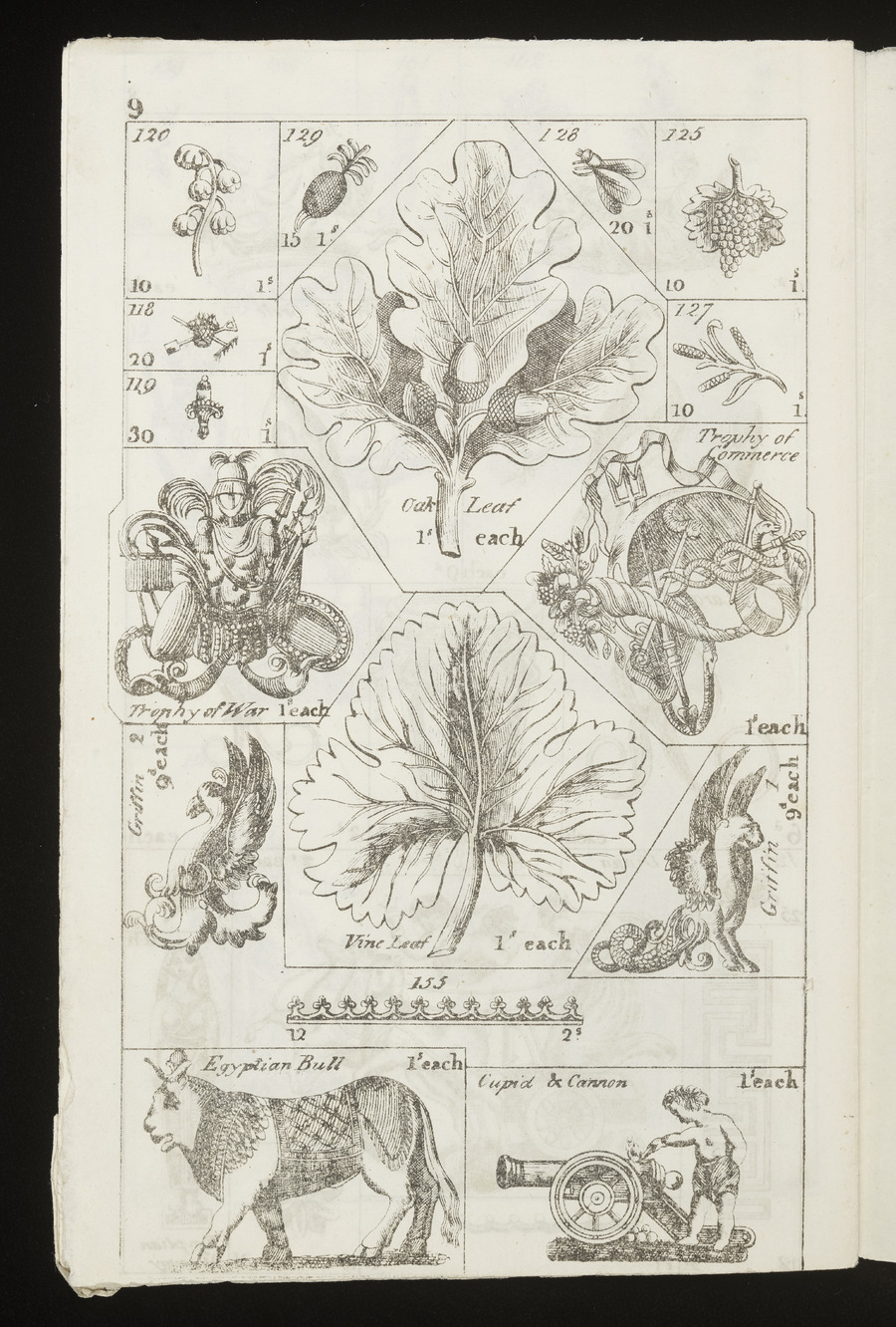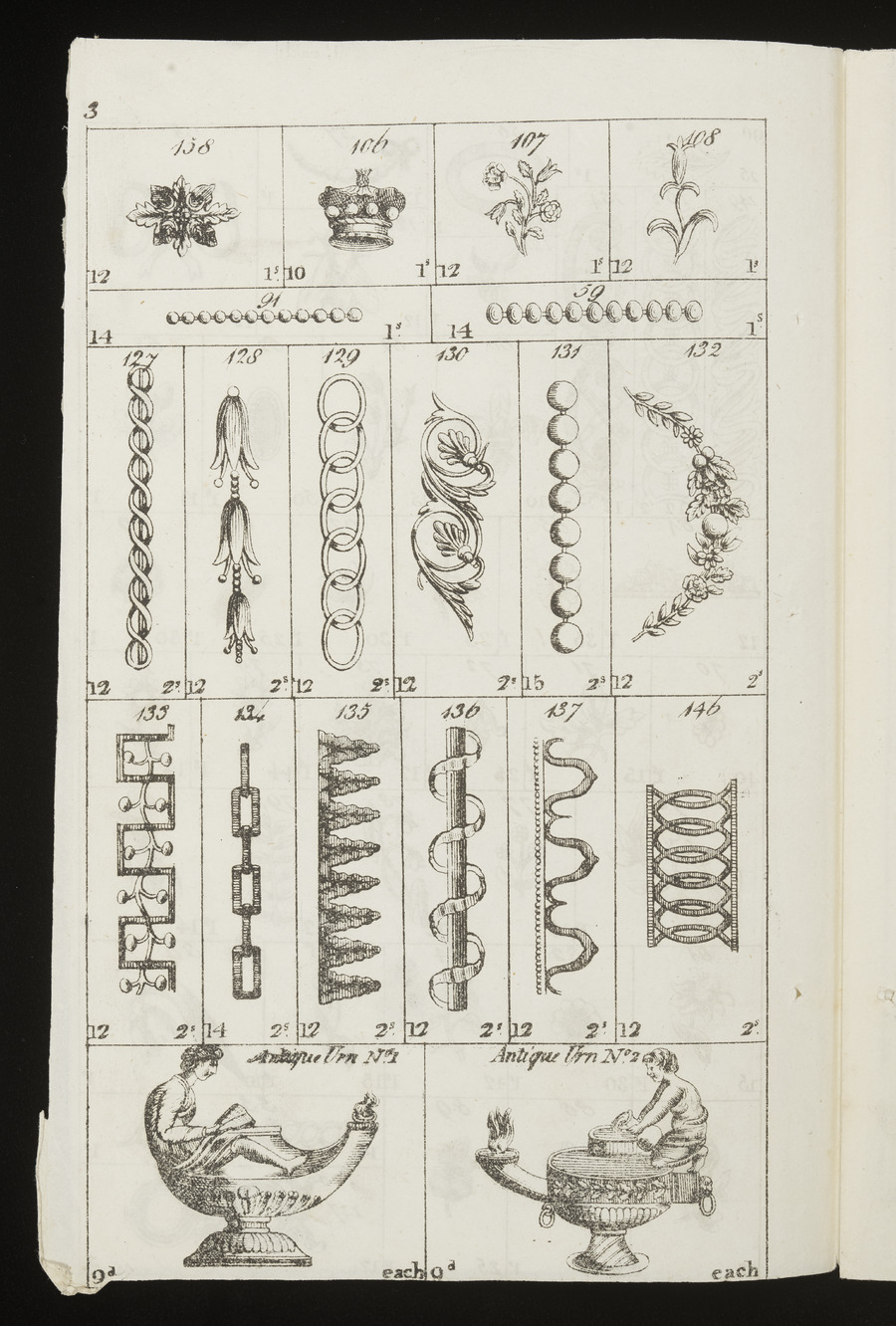 R. Ackermann's pattern card of embossed ornaments in gold or white