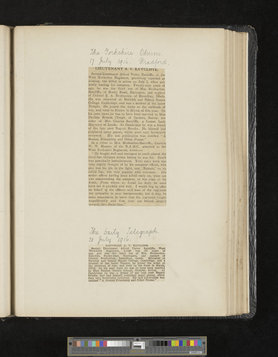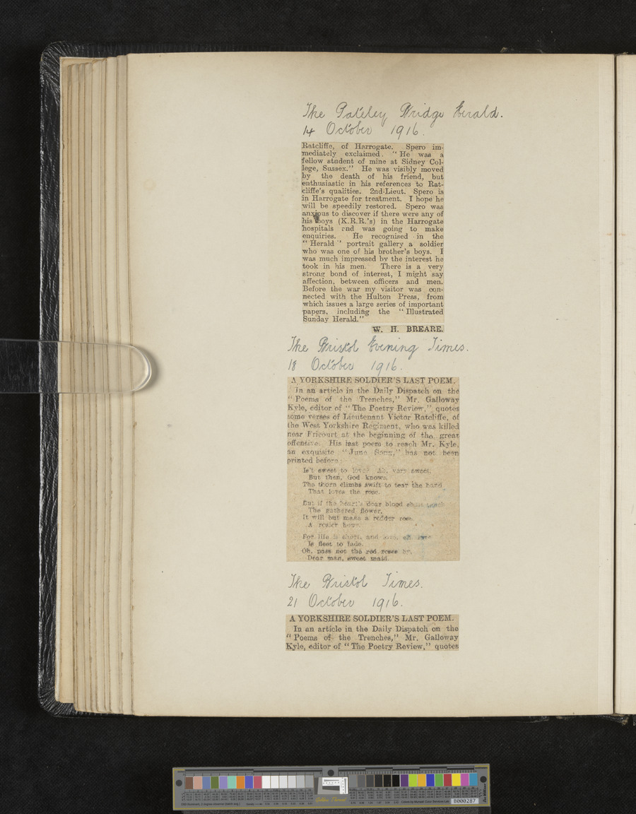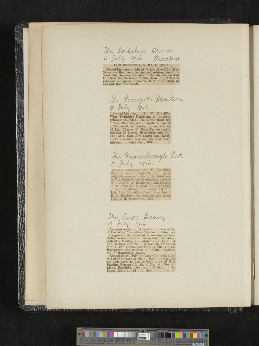 - Title: A.V. Ratcliffe scrapbook of obituaries and cuttings of poems