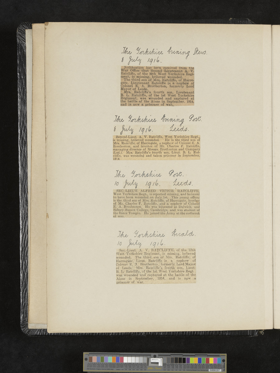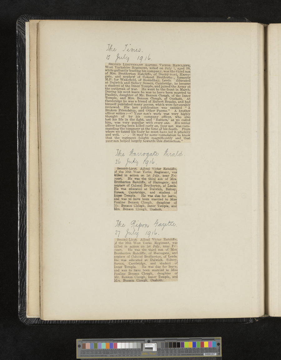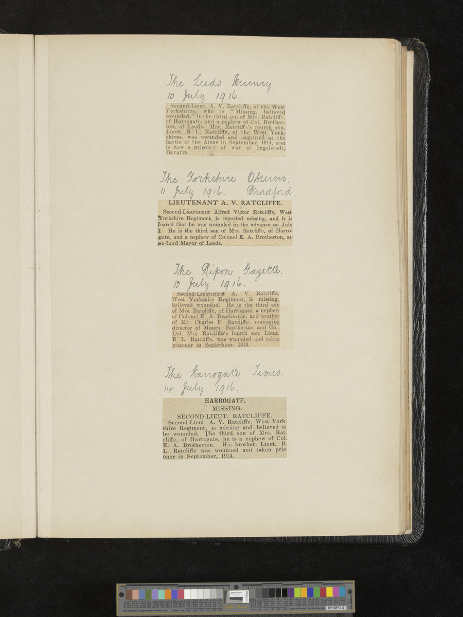 - Title: A.V. Ratcliffe scrapbook of obituaries and cuttings of poems