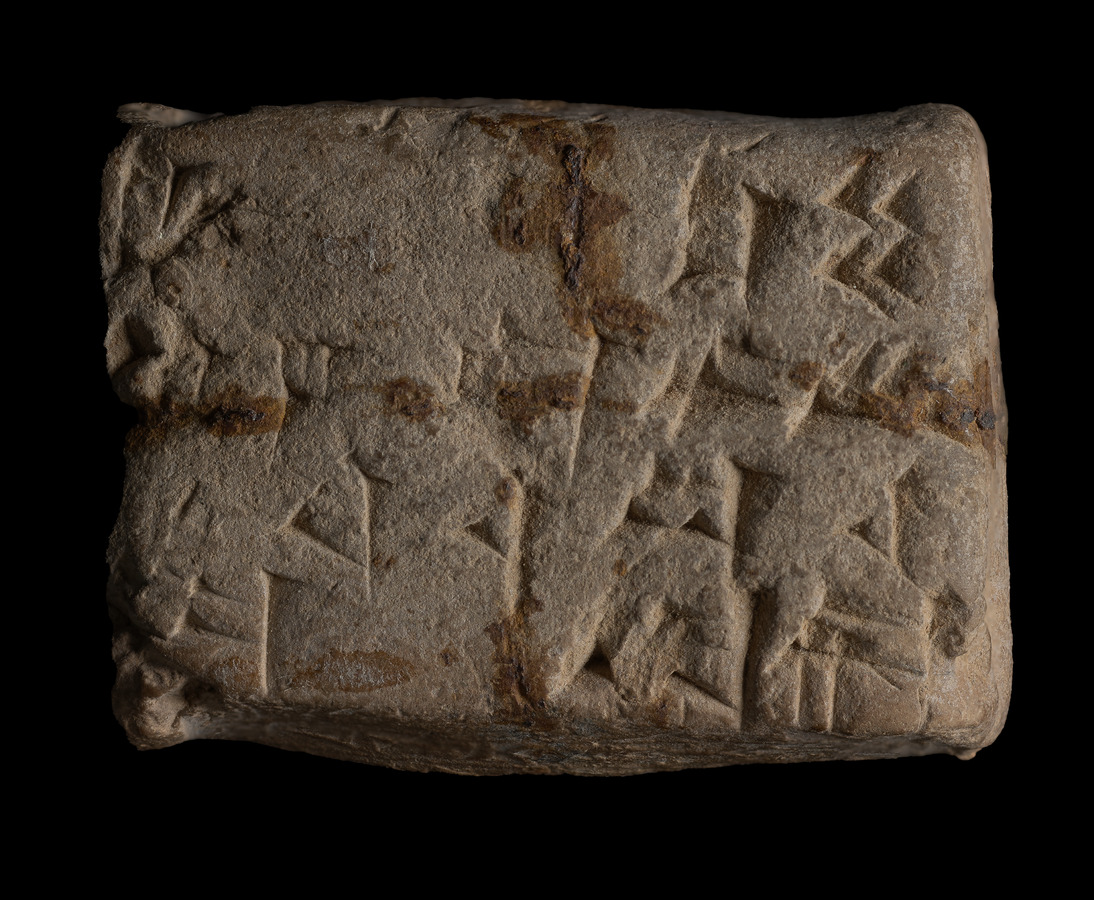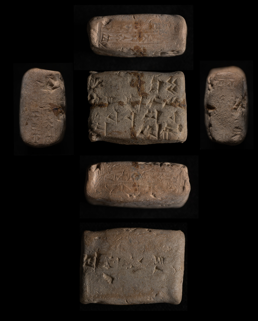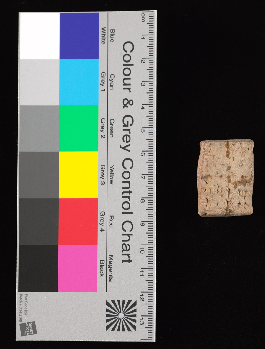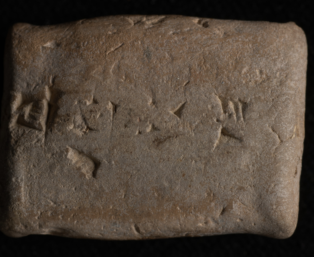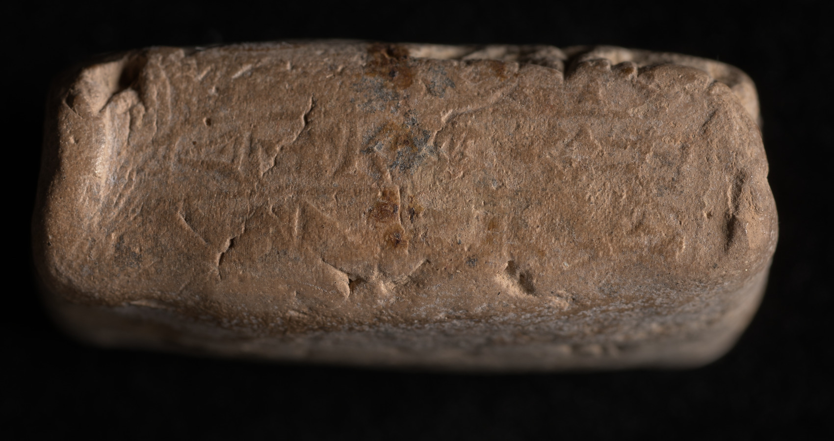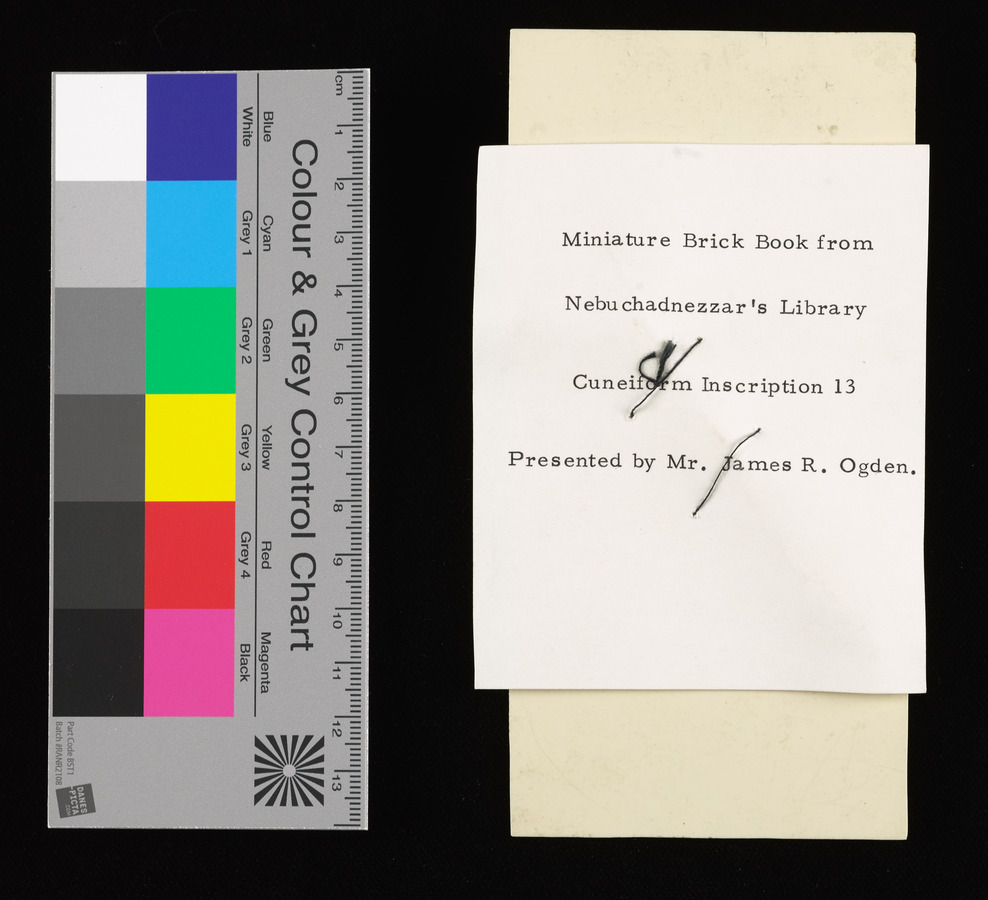 A cuneiform tablet, also described as a 'miniature brick book'. Described in a note as from Nebuchadnezzar's Library.