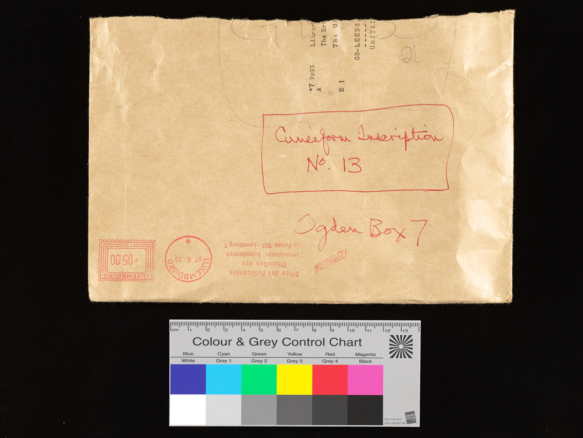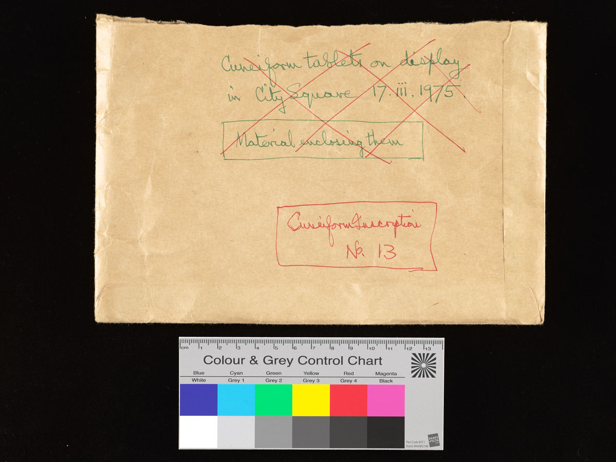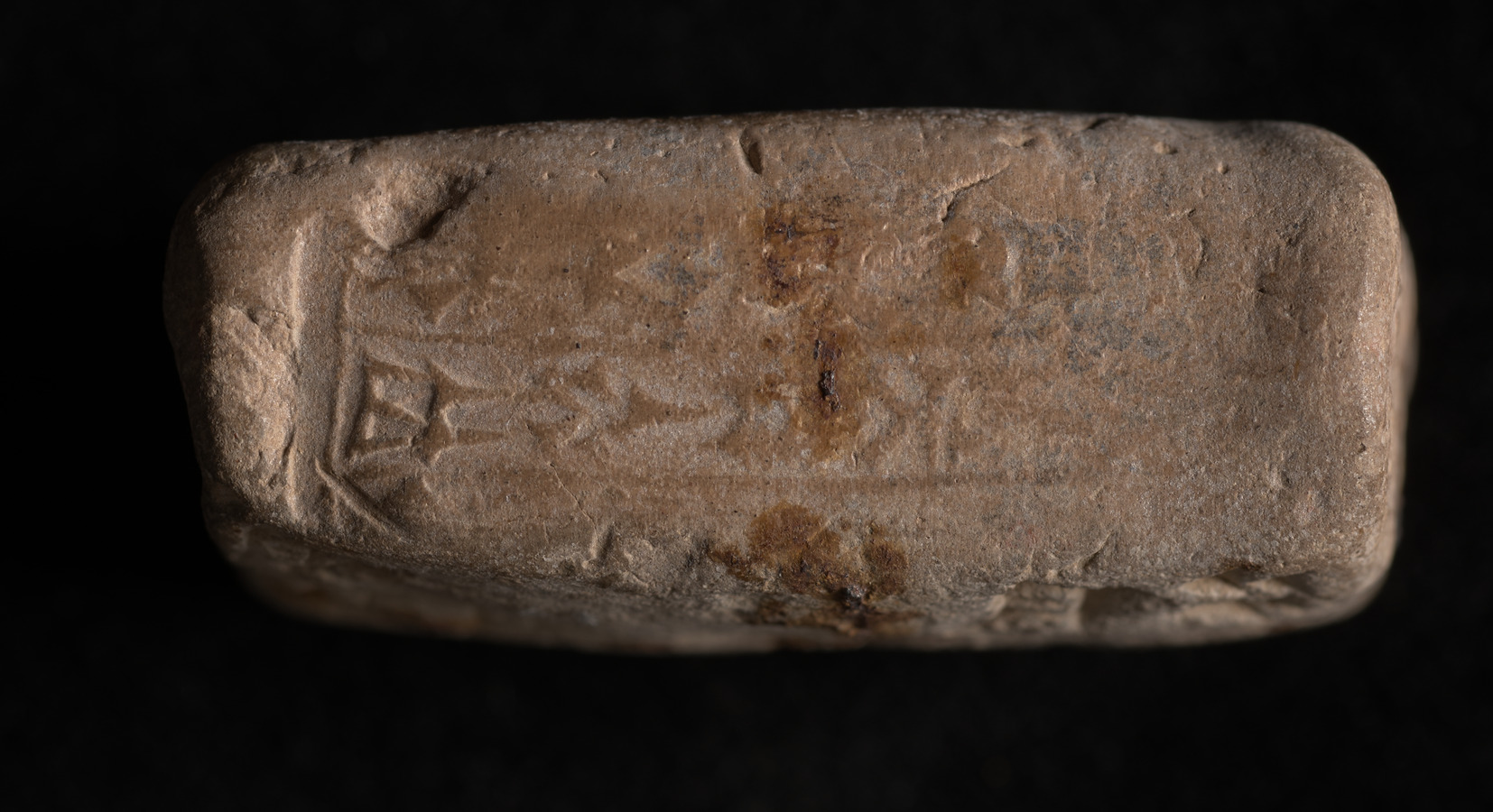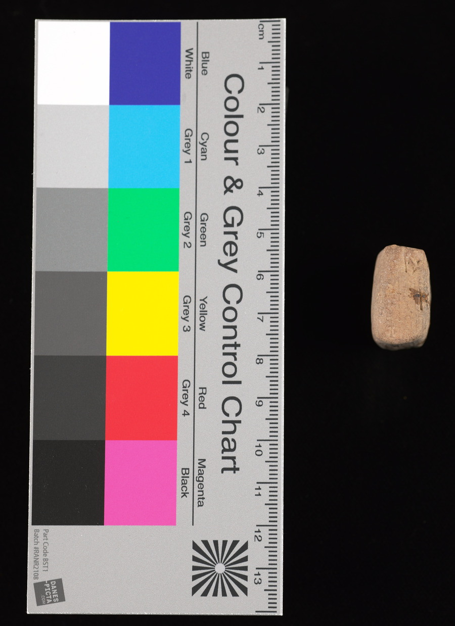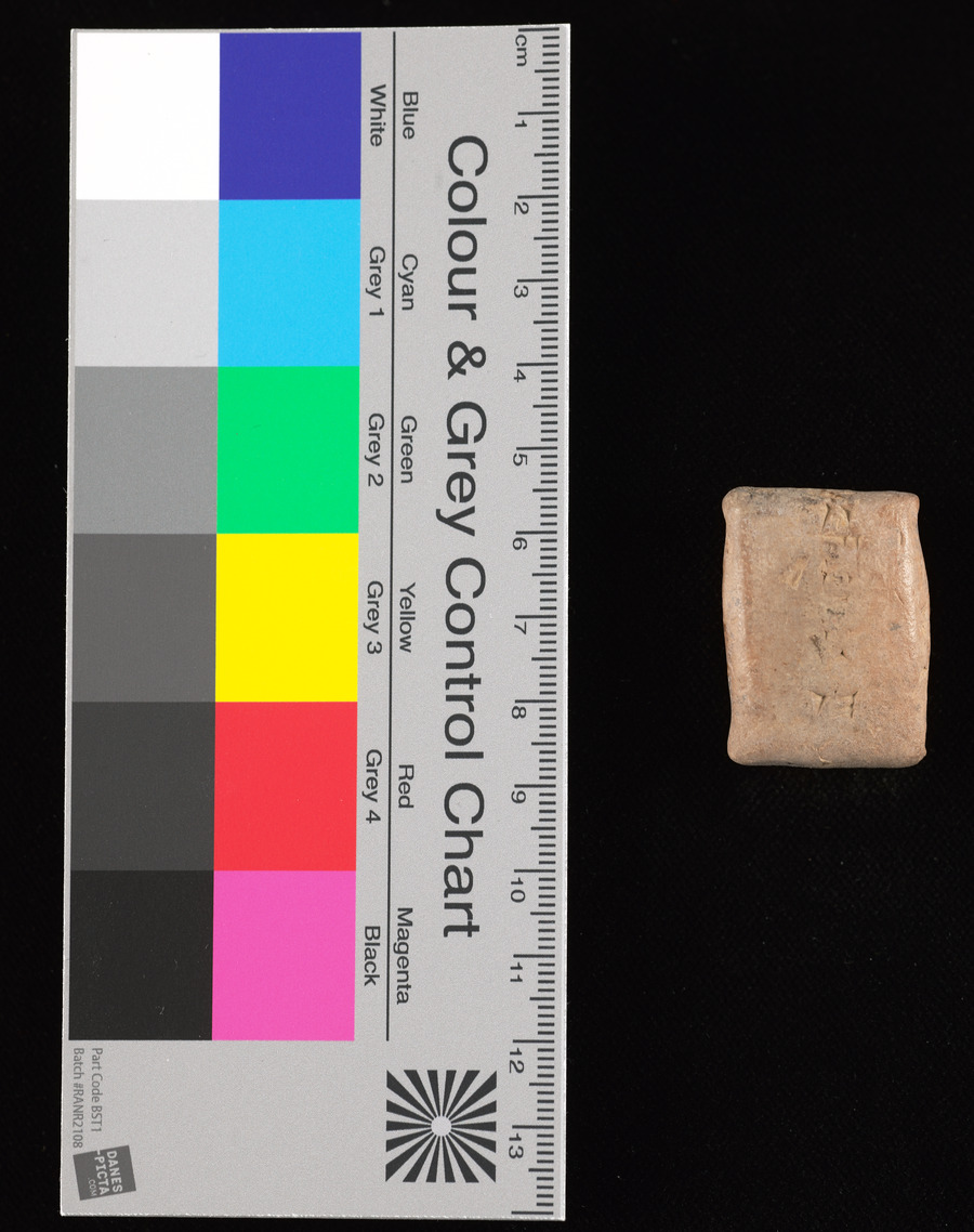 A cuneiform tablet, also described as a 'miniature brick book'. Described in a note as from Nebuchadnezzar's Library.