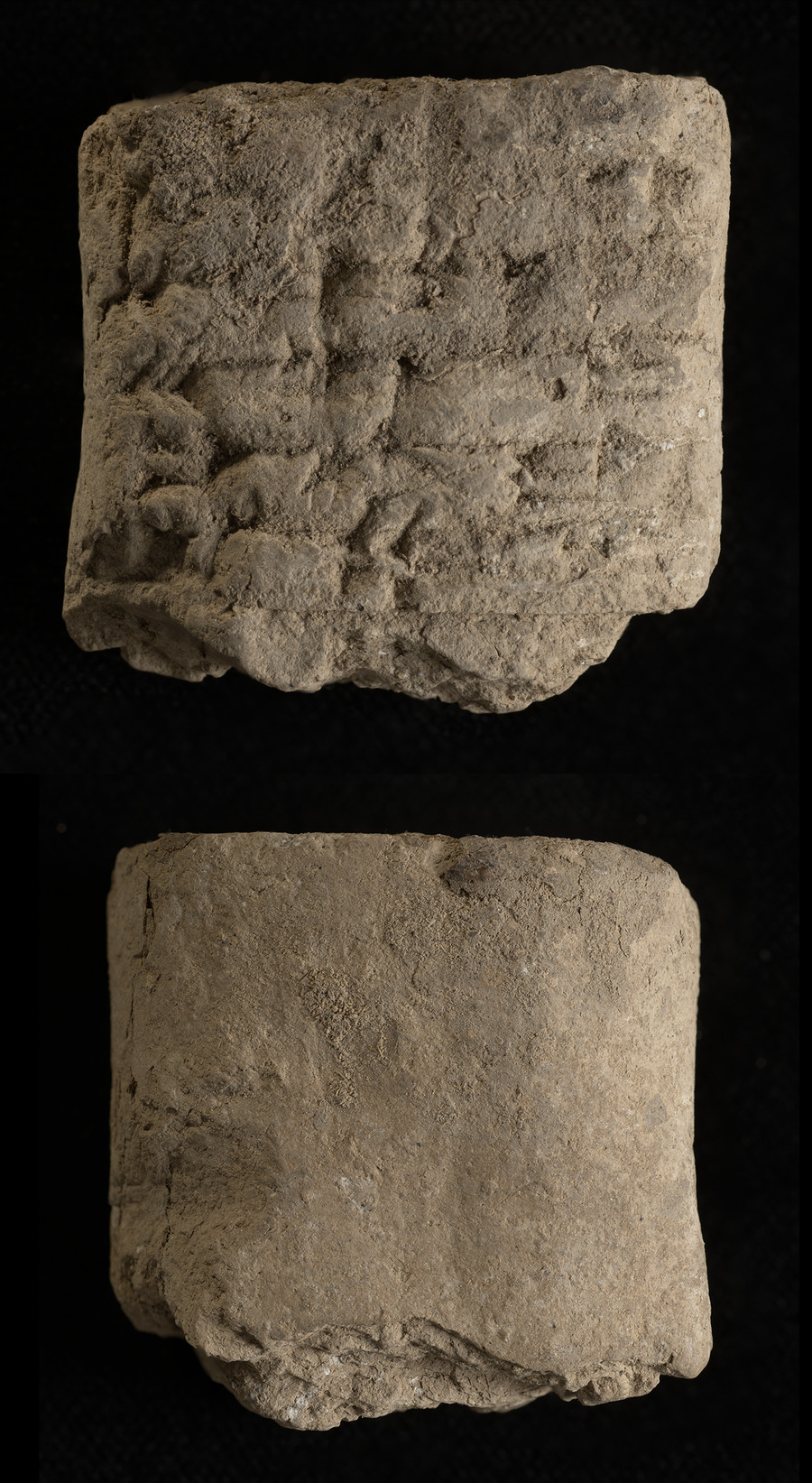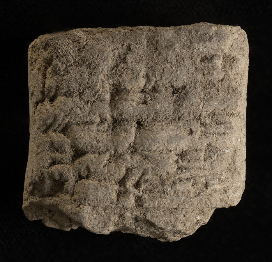 A significant section of a pale clay cuneiform tablet with script on one side only.