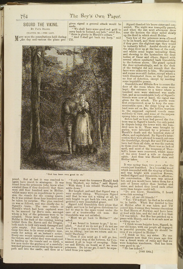 - Title: Page headed 'Sigurd the Viking Chapter XI: The last', with picture of couple (Sigurd and Gunnhilda) walking through a forest