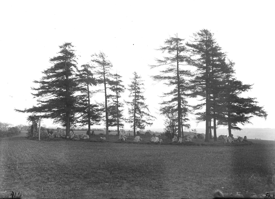 - Title: 'Rollright and Long Compton' A standing stone circle in a field surrounded by trees