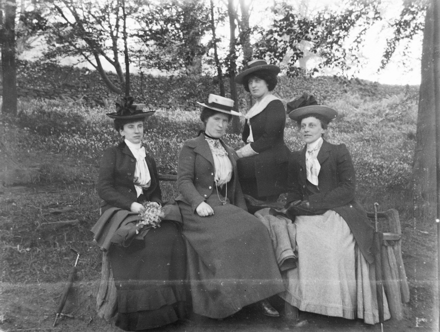 - Title: Four ladies sitting on a bench, taken at Bolton Abbey