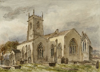 Cawthorne, exterior from S.E. before restroration Camthorne Church by the Lady Carteret inscribed along bottom.