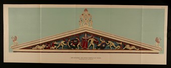 Der Ostgiebel des Aphaia-Tempels Auf Aegina Print of the East Gable of the Temple of Aphaia on the Island of Aegina.Depicts eleven Greek warriors engaged in battle and two griffins on either side.There are two seperate figures on the top incorporated within a tree like design.
