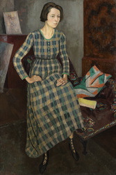 Nude on a model's throne (also known as Nude on a Red Couch (or Nude with an Abstract Painting)